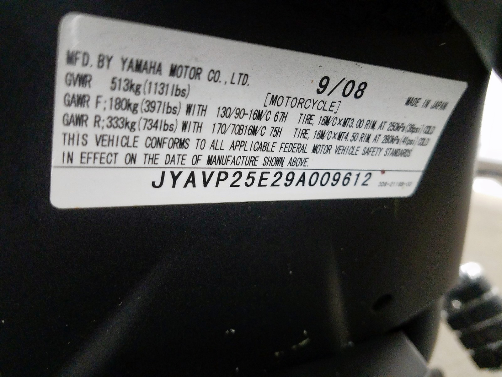 VIN: JYAVP25E29A009612
