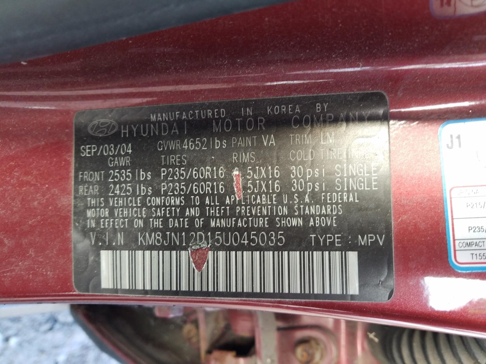 VIN: KM8JN12D15U045035