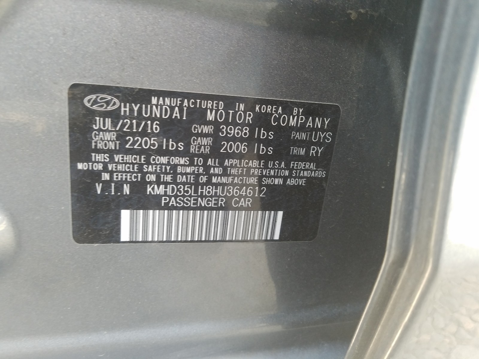 VIN: KMHD35LH8HU364612