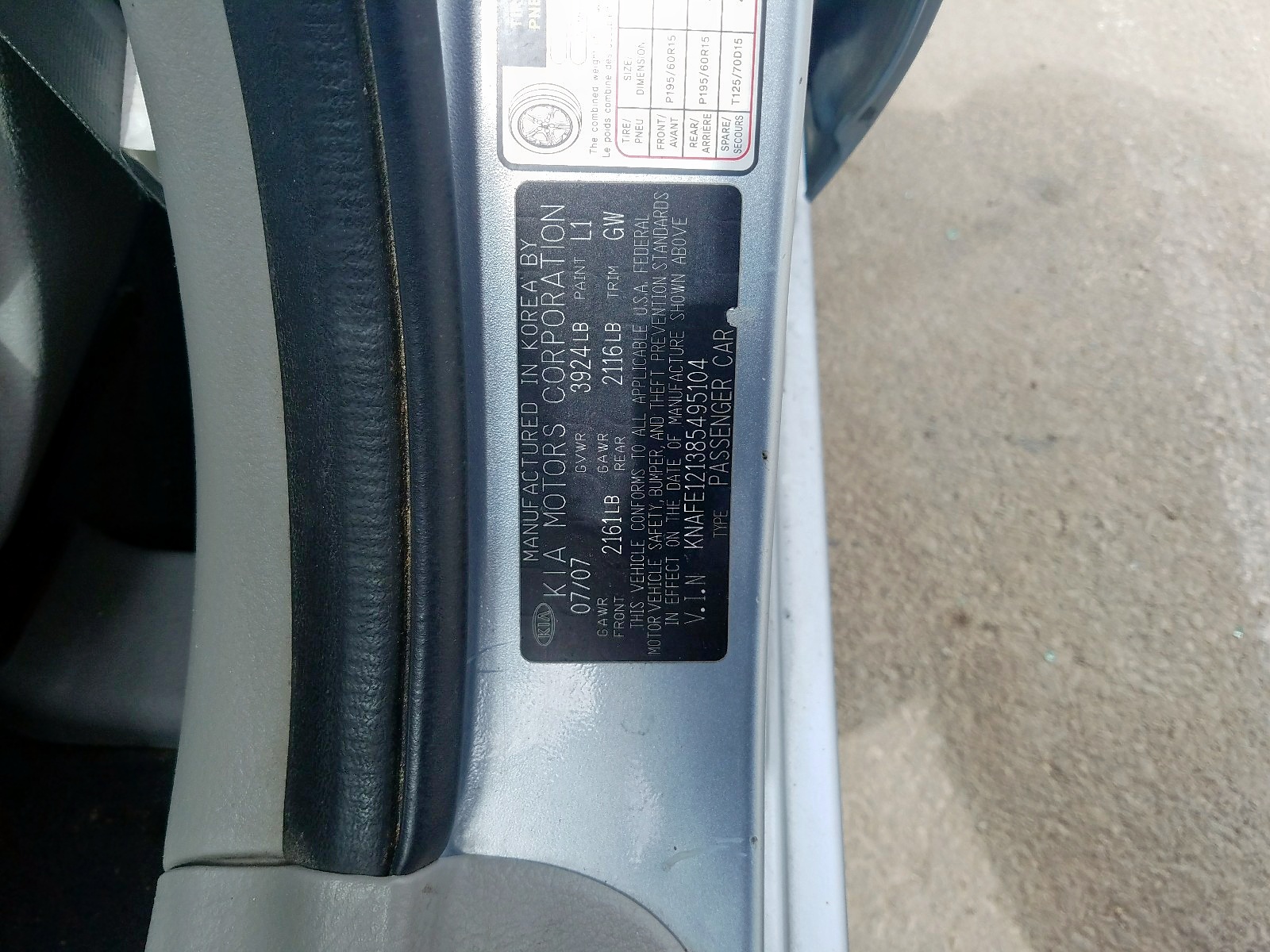 VIN: KNAFE121385495104