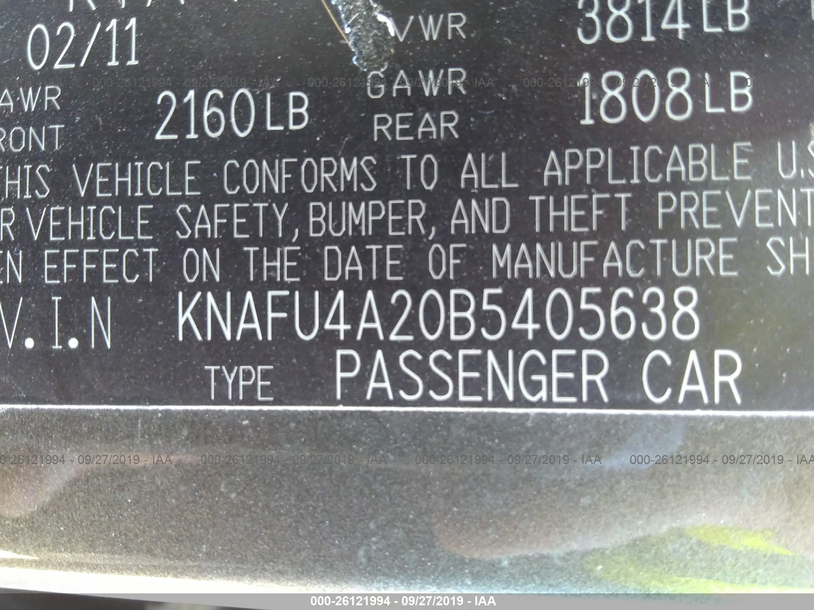 VIN: KNAFU4A20B5405638