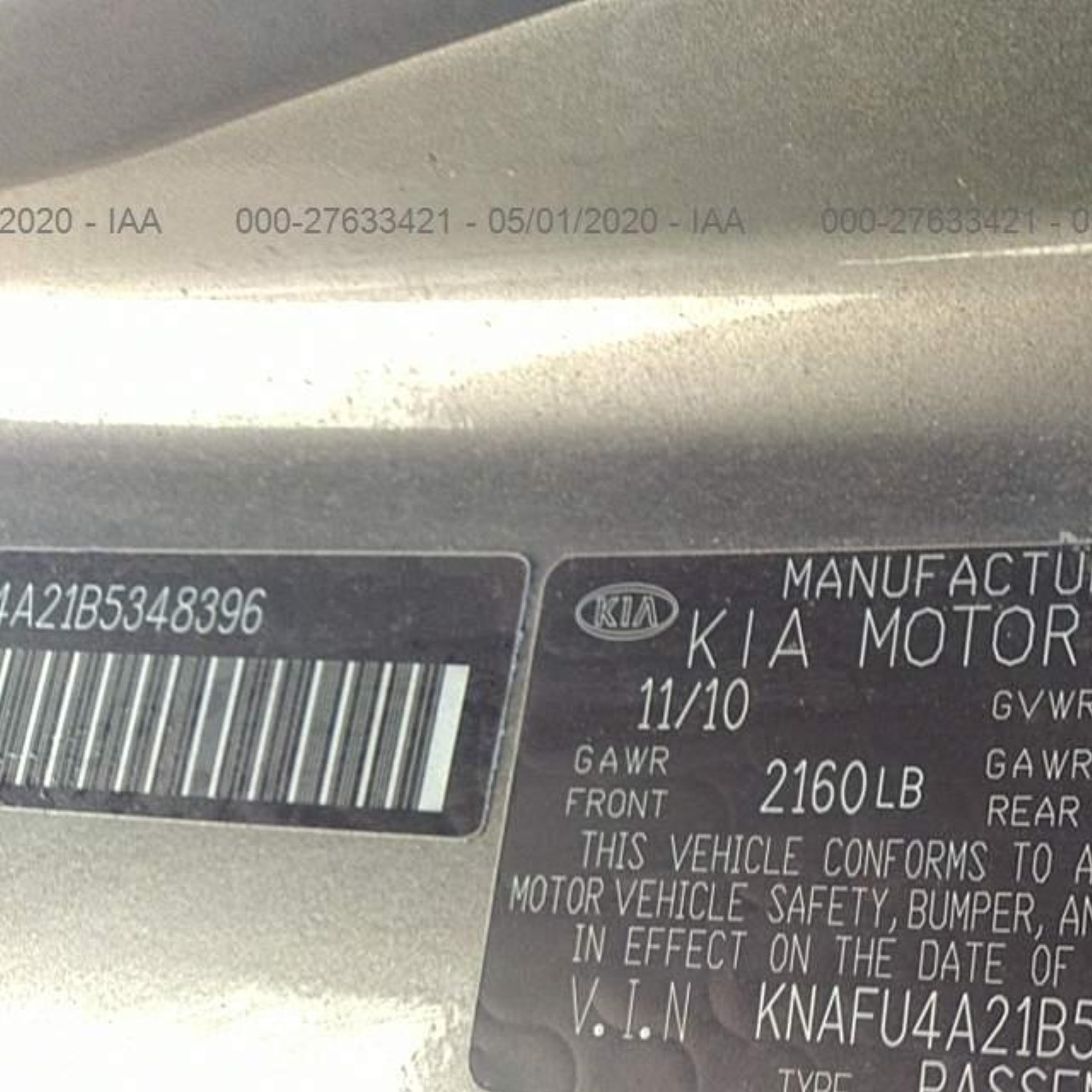 VIN: KNAFU4A21B5348396