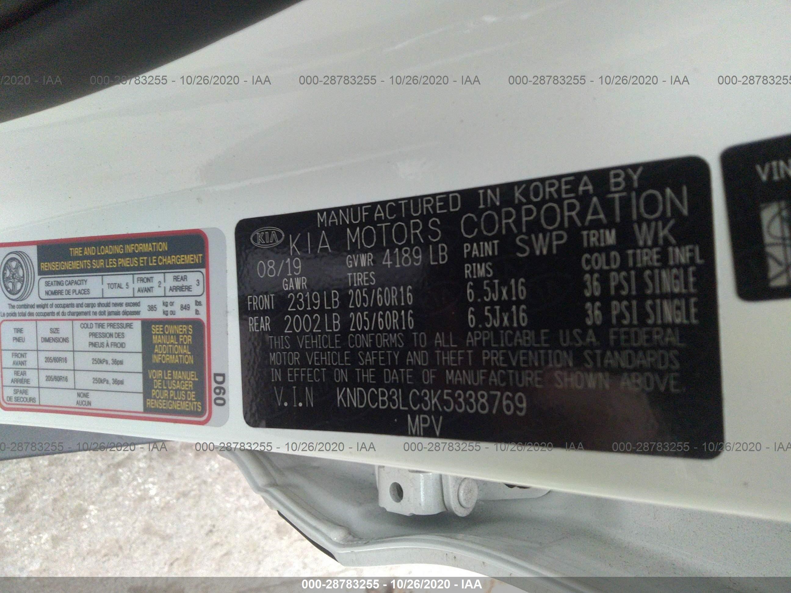 VIN: KNDCB3LC3K5338769