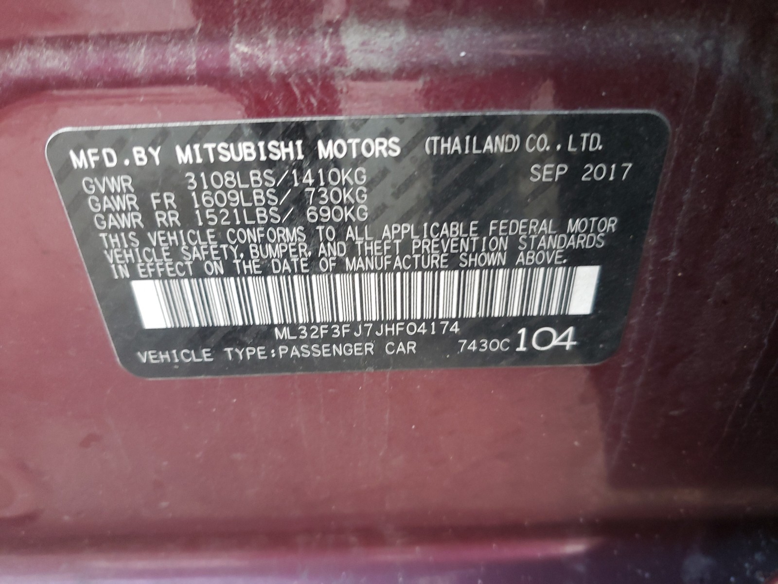 VIN: ML32F3FJ7JHF04174