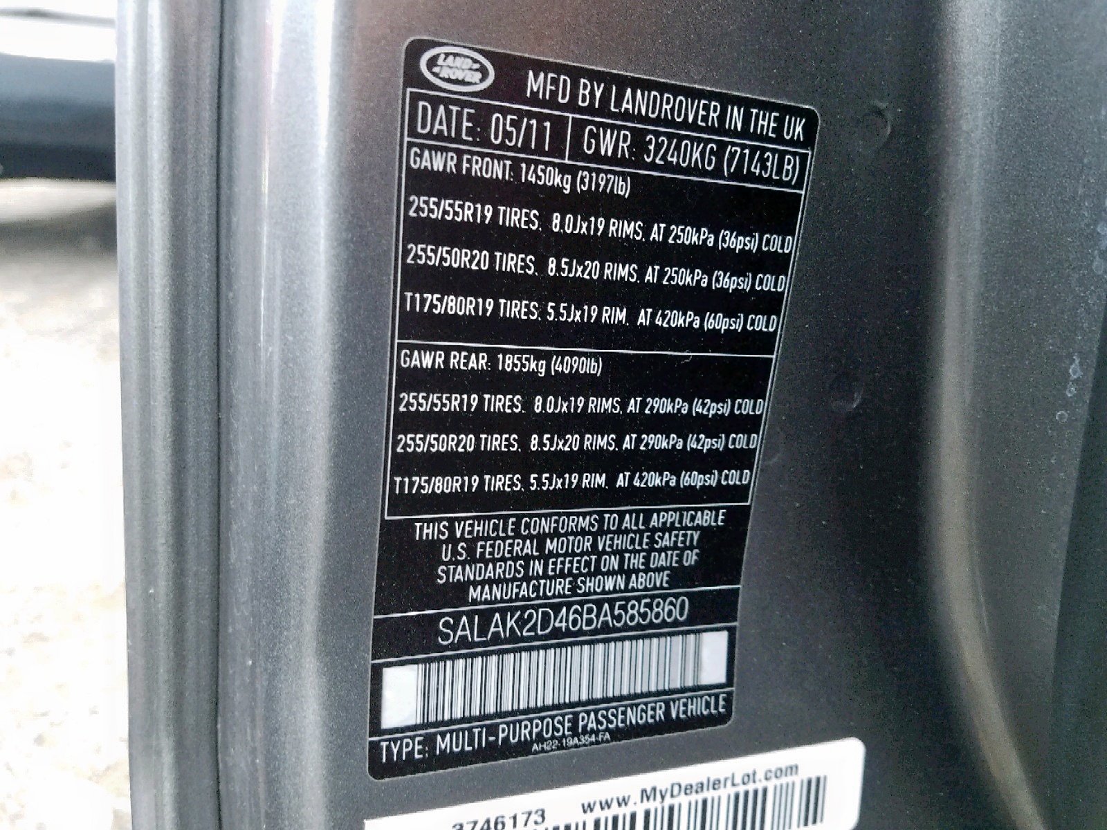 VIN: SALAK2D46BA585860