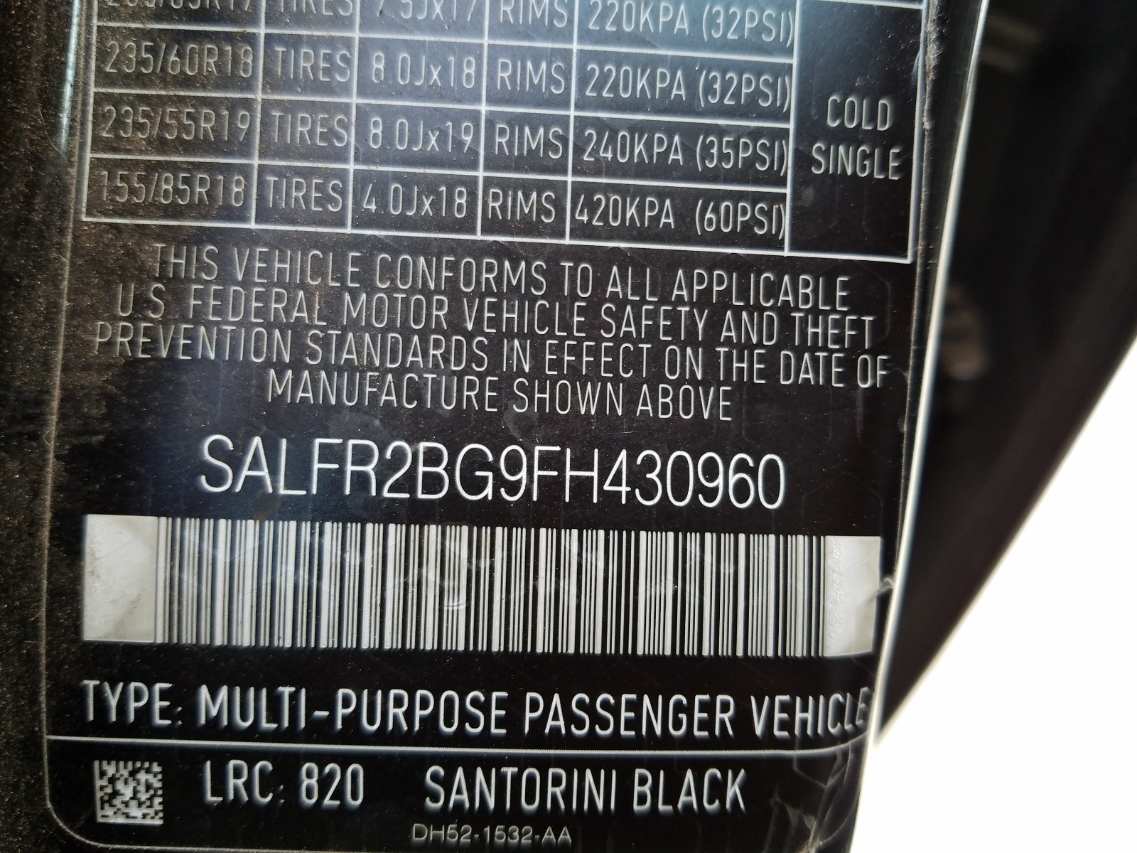 VIN: SALFR2BG9FH430960