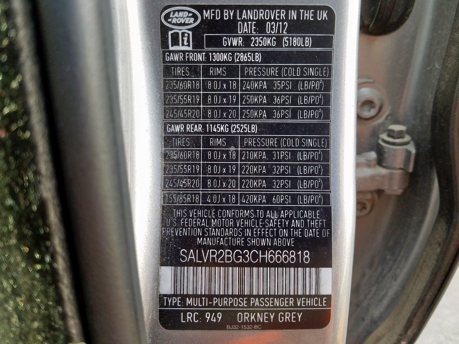 VIN: SALVR2BG3CH666818