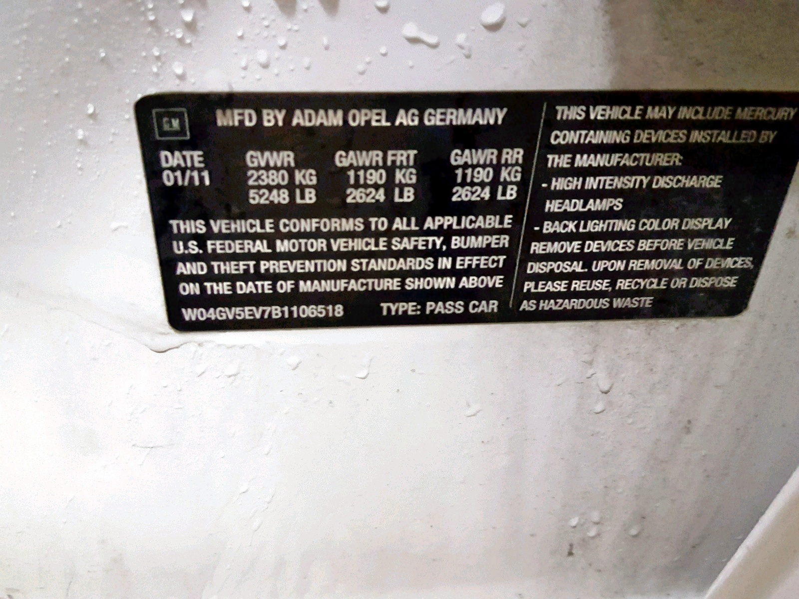 VIN: W04GV5EV7B1106518