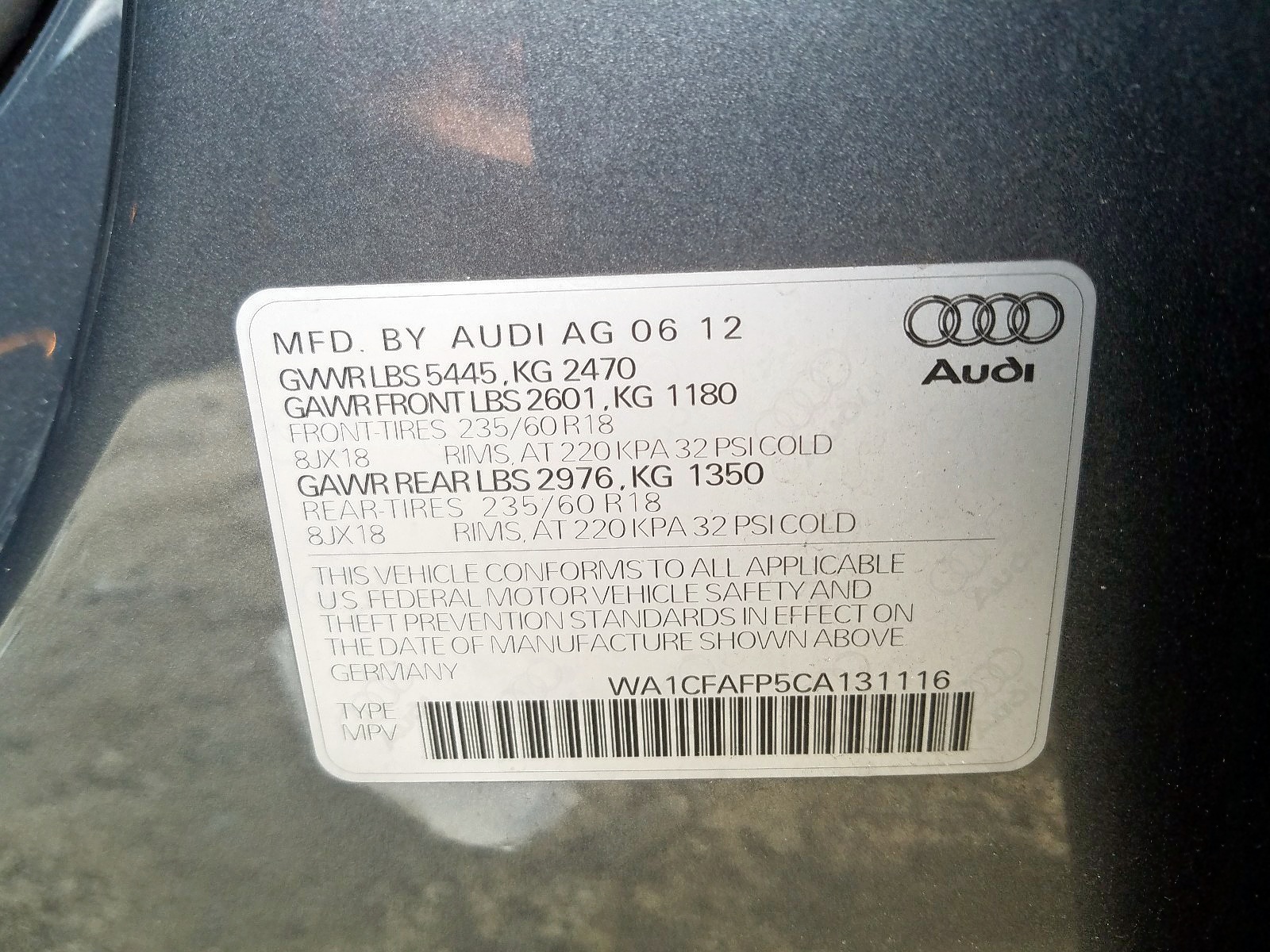 VIN: WA1CFAFP5CA131116