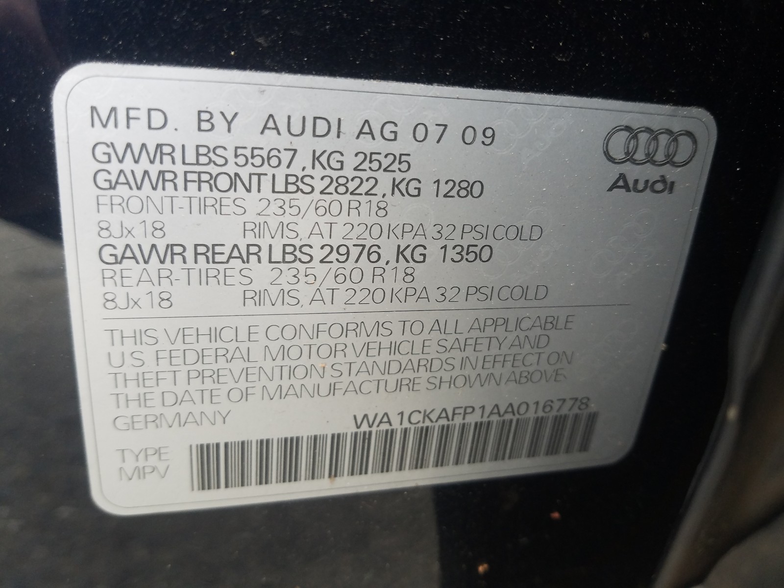 VIN: WA1CKAFP1AA016778
