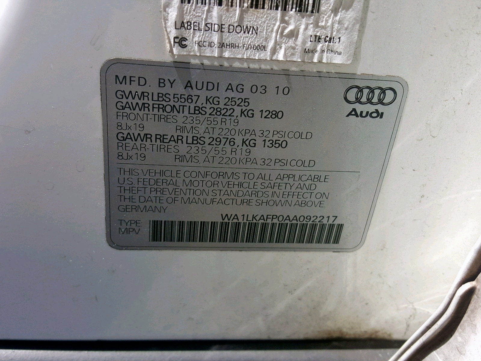 VIN: WA1LKAFP0AA092217
