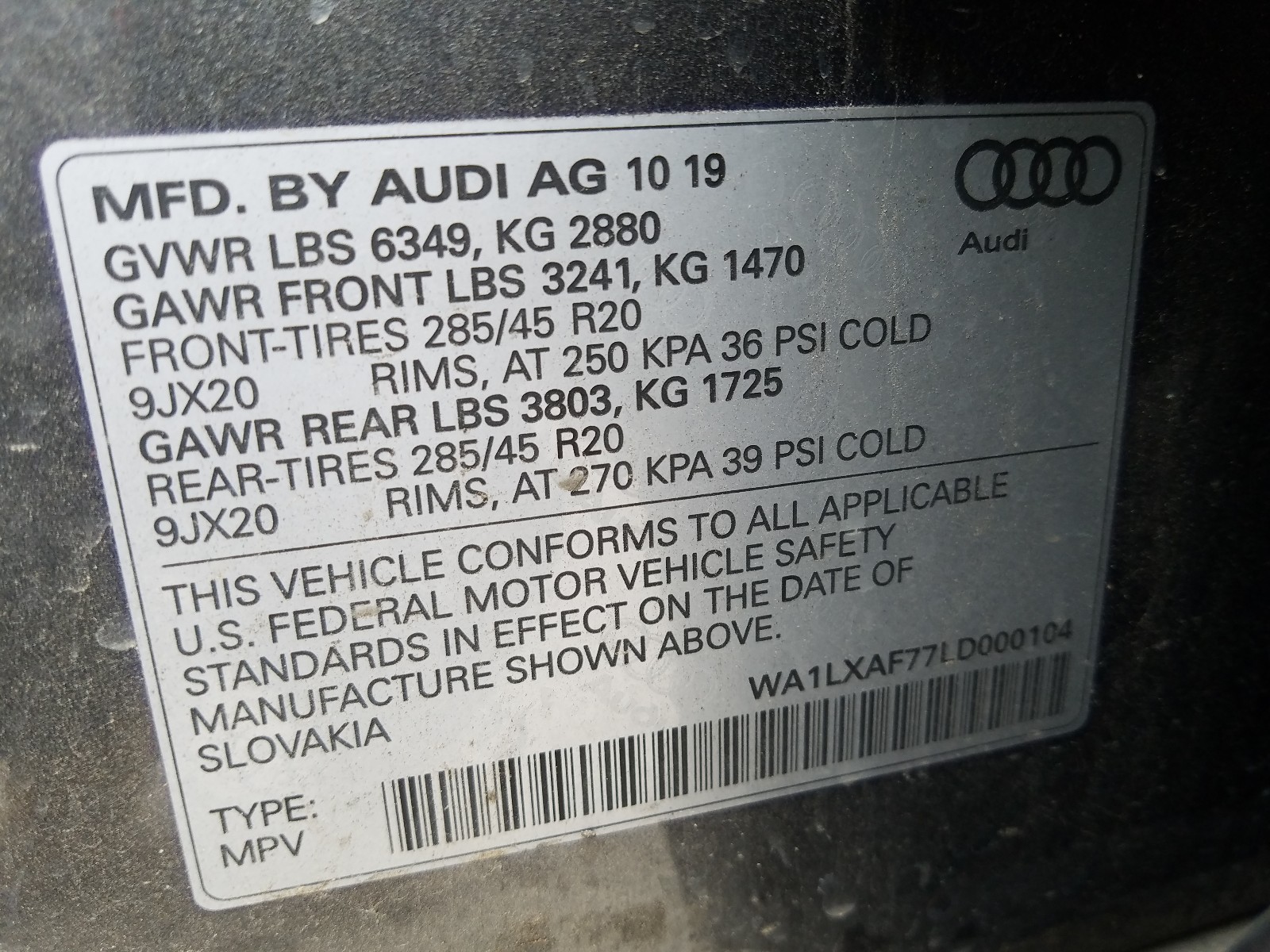 VIN: WA1LXAF77LD000104