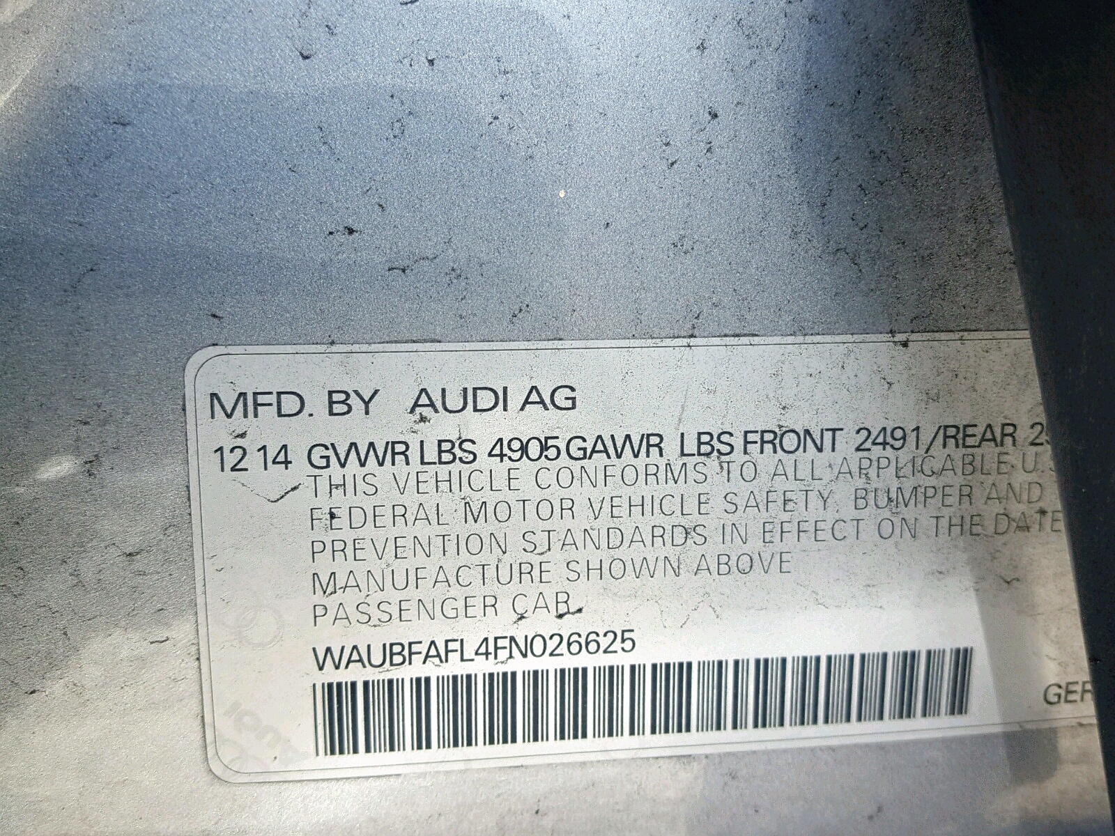 VIN: WAUBFAFL4FN026625