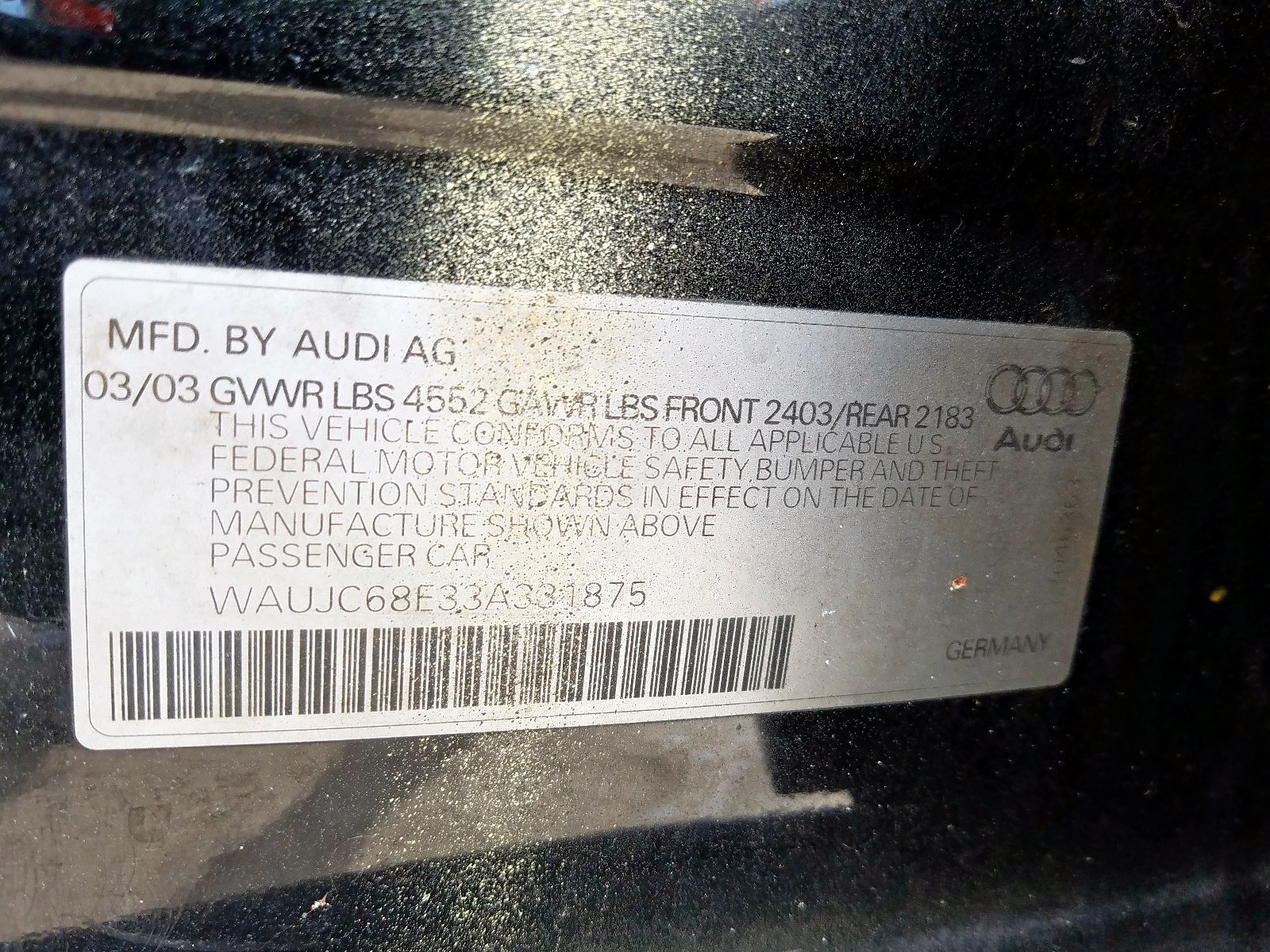 VIN: WAUJC68E33A331875