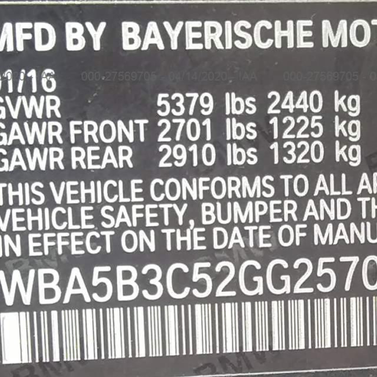 VIN: WBA5B3C52GG257068