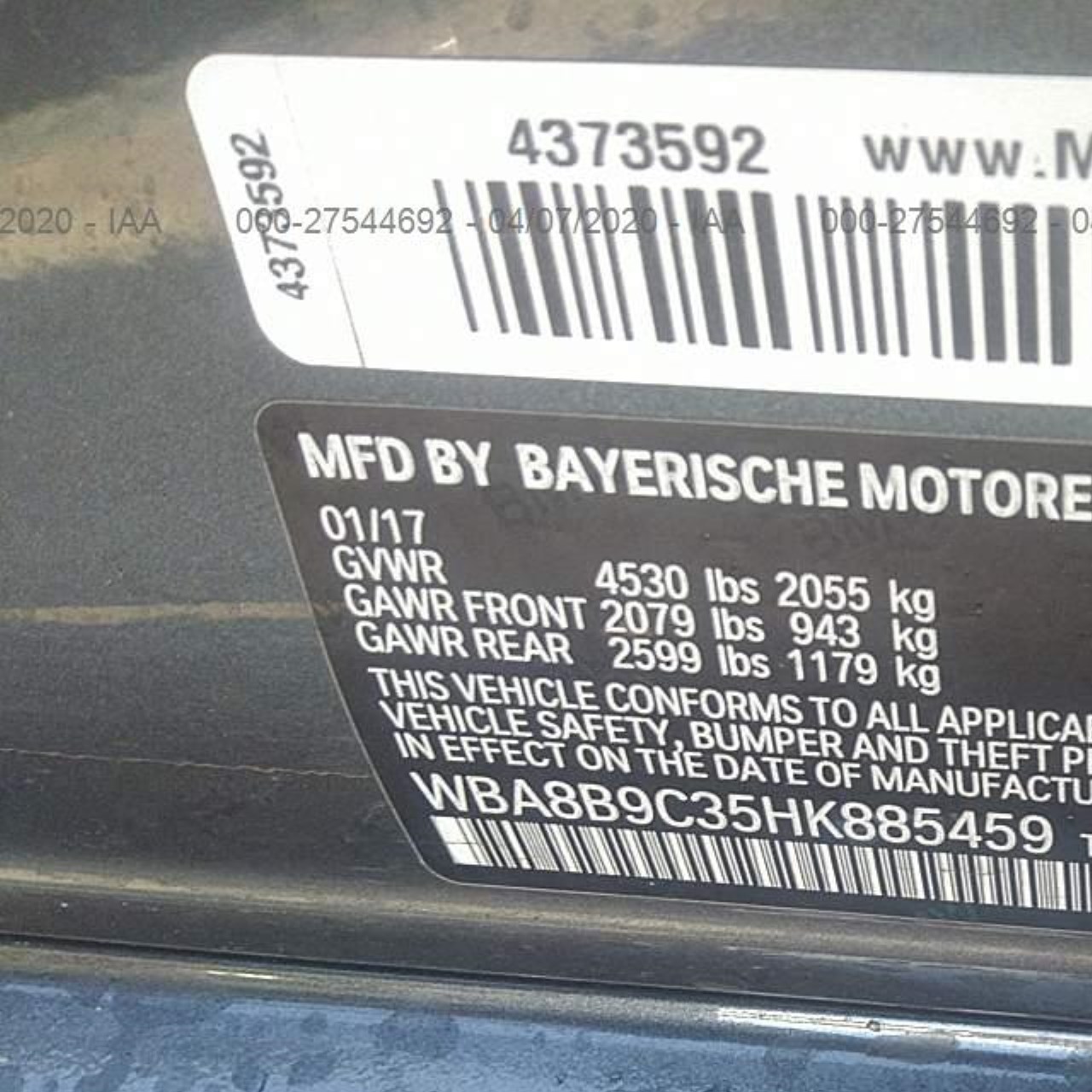 VIN: WBA8B9C35HK885459