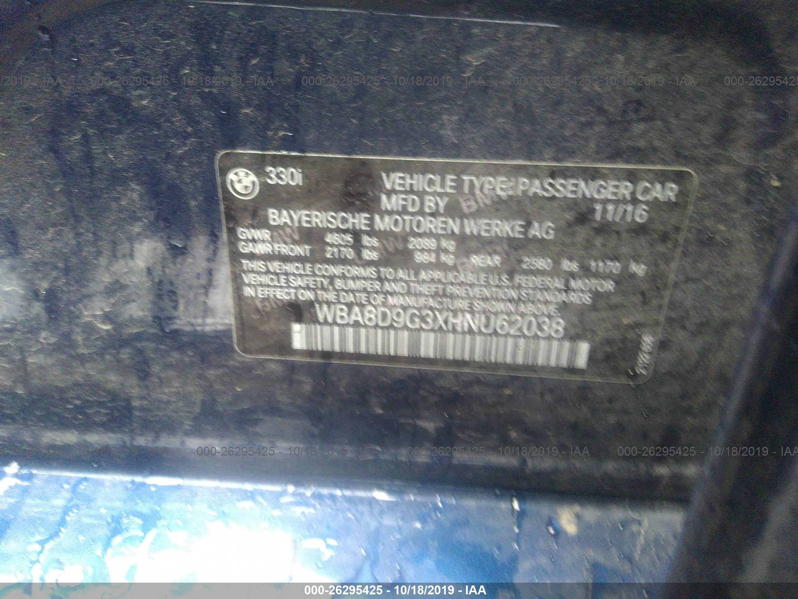 VIN: WBA8D9G3XHNU62038