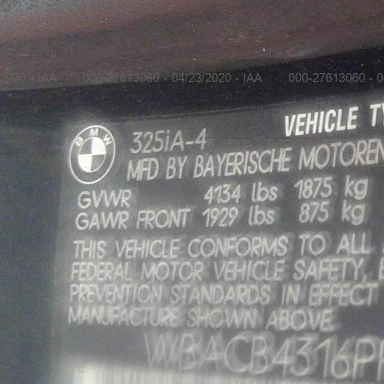 VIN: WBACB4316PFL12489