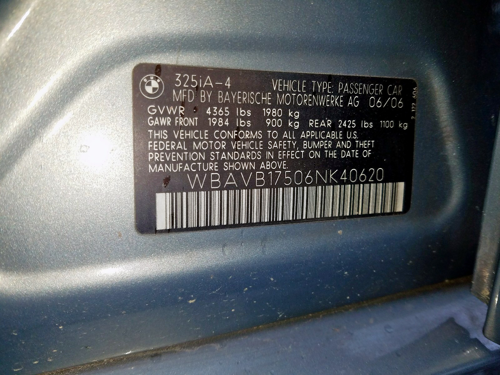 VIN: WBAVB17506NK40620