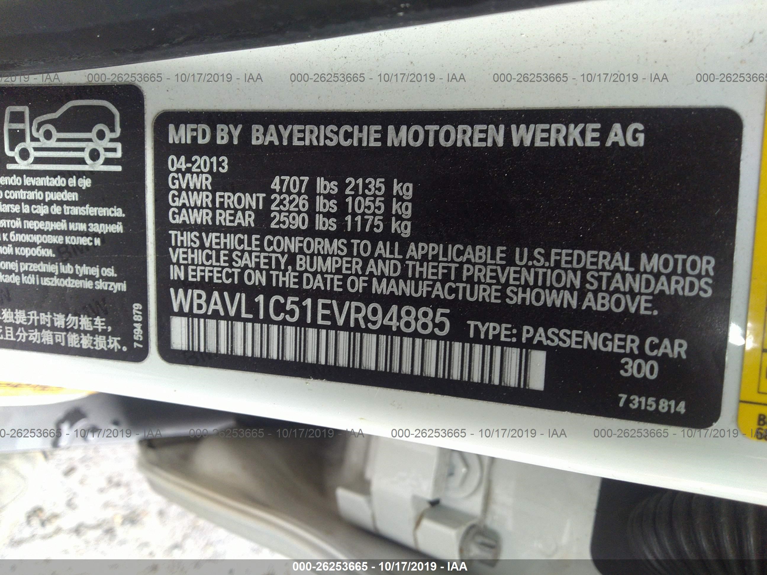 VIN: WBAVL1C51EVR94885