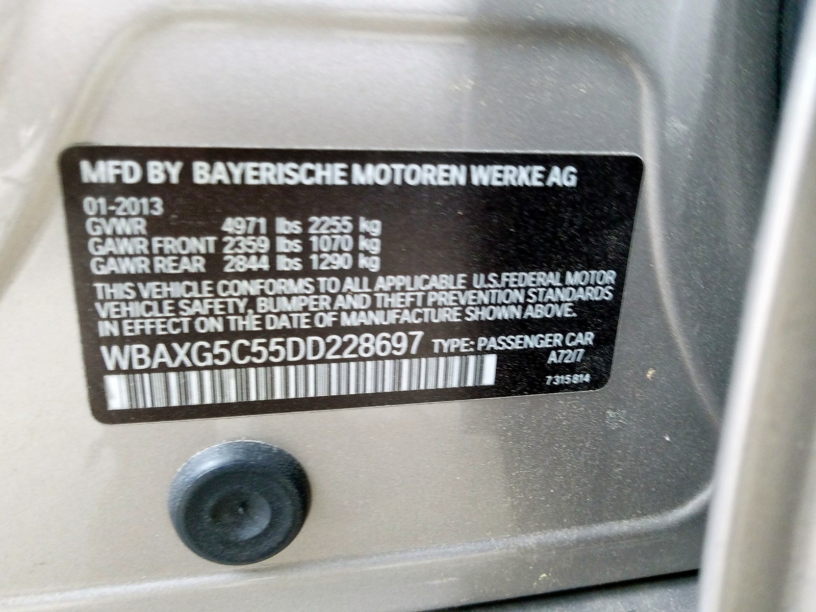 VIN: WBAXG5C55DD228697