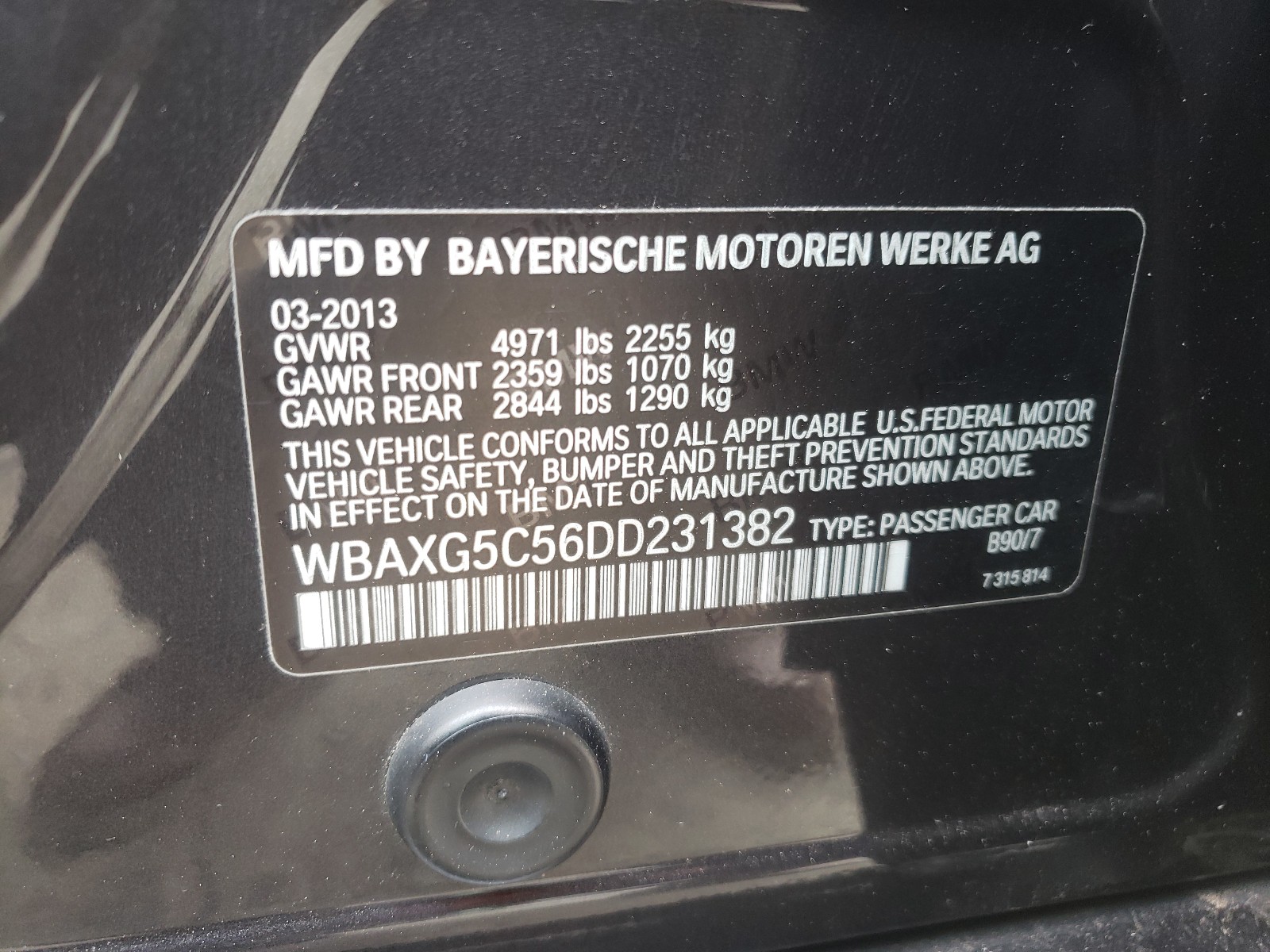 VIN: WBAXG5C56DD231382
