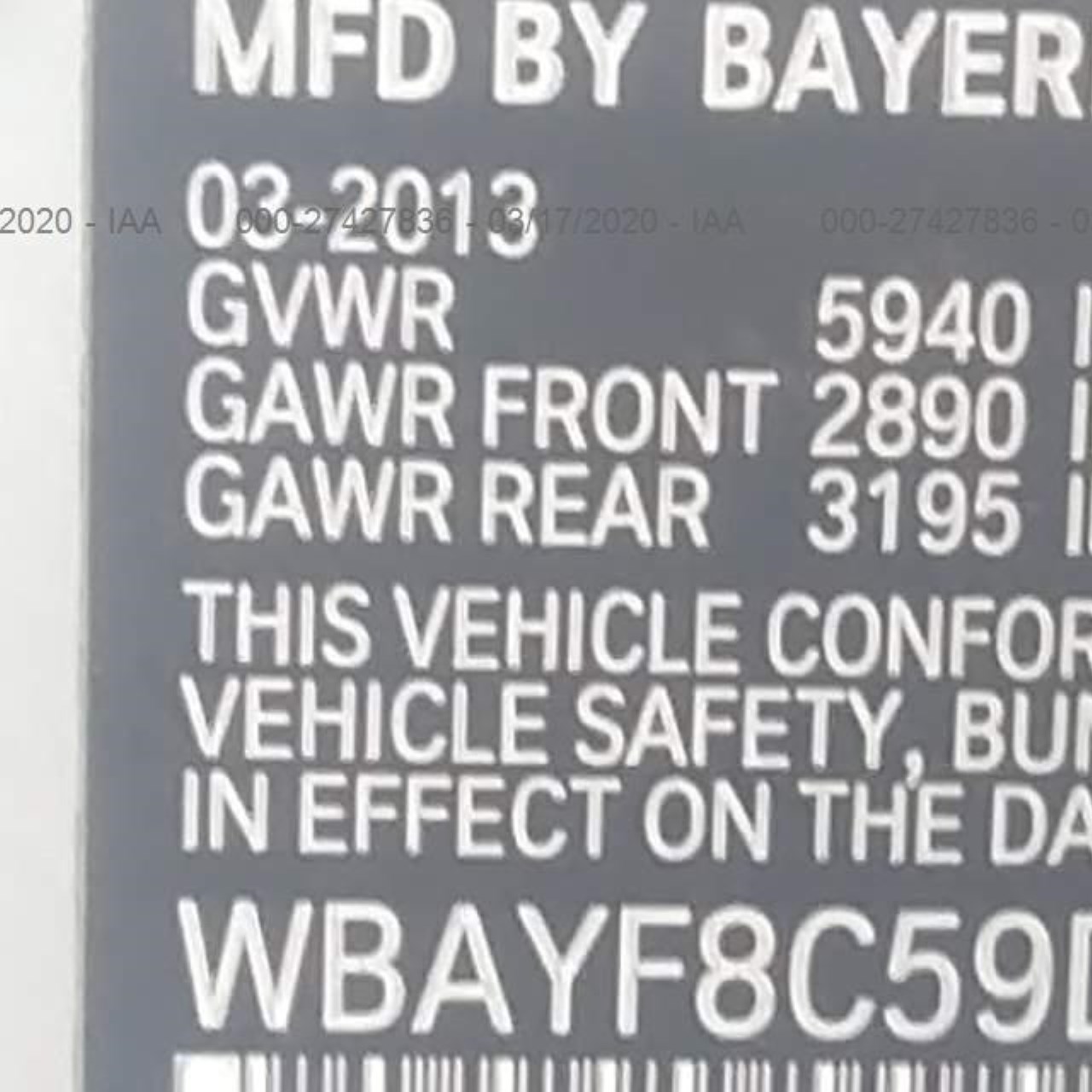 VIN: WBAYF8C59DD141023