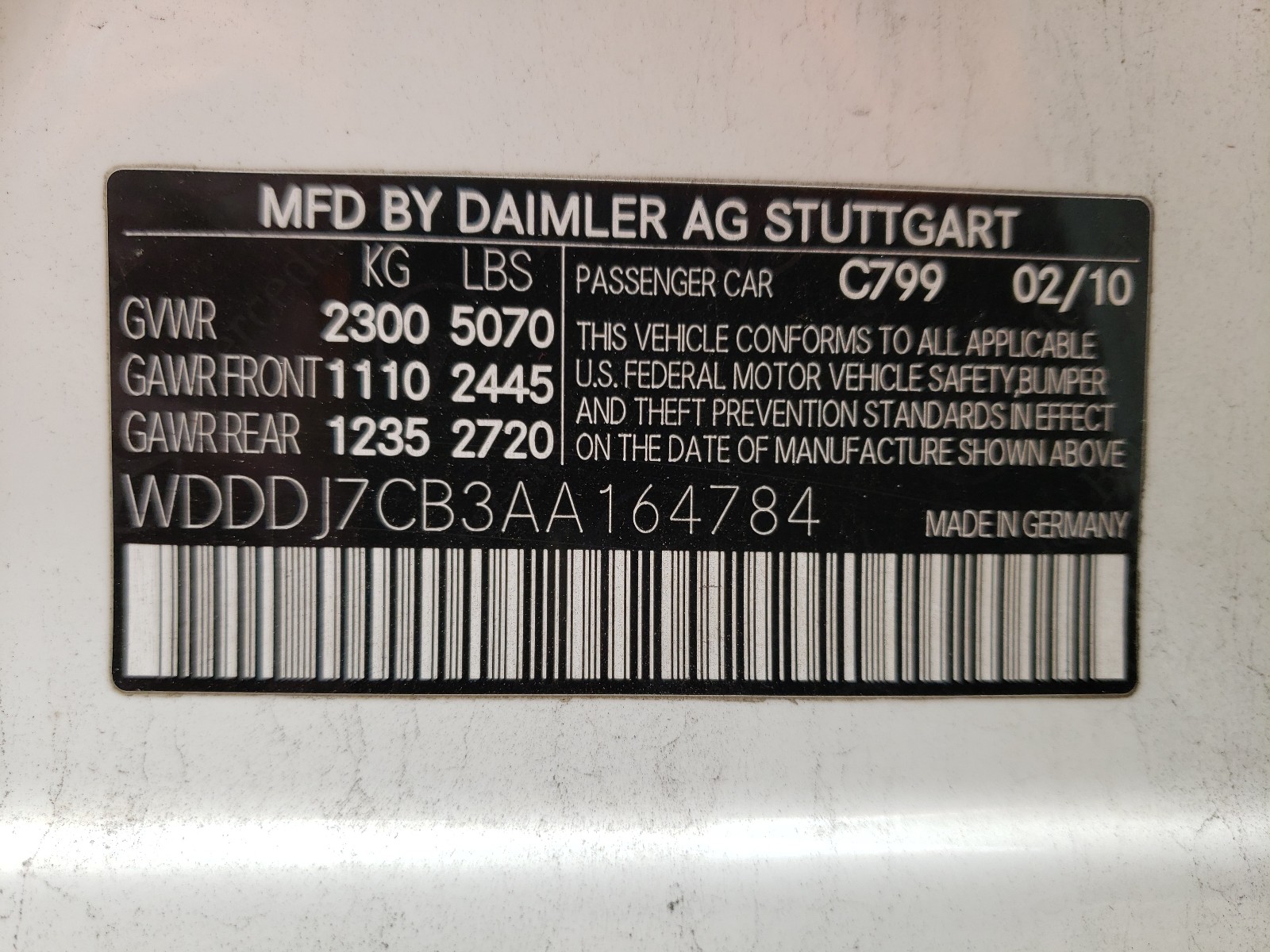 VIN: WDDDJ7CB3AA164784