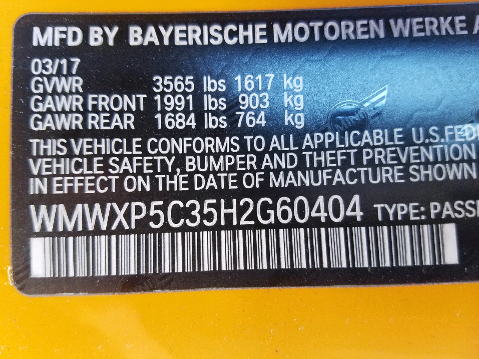 VIN: WMWXP5C35H2G60404