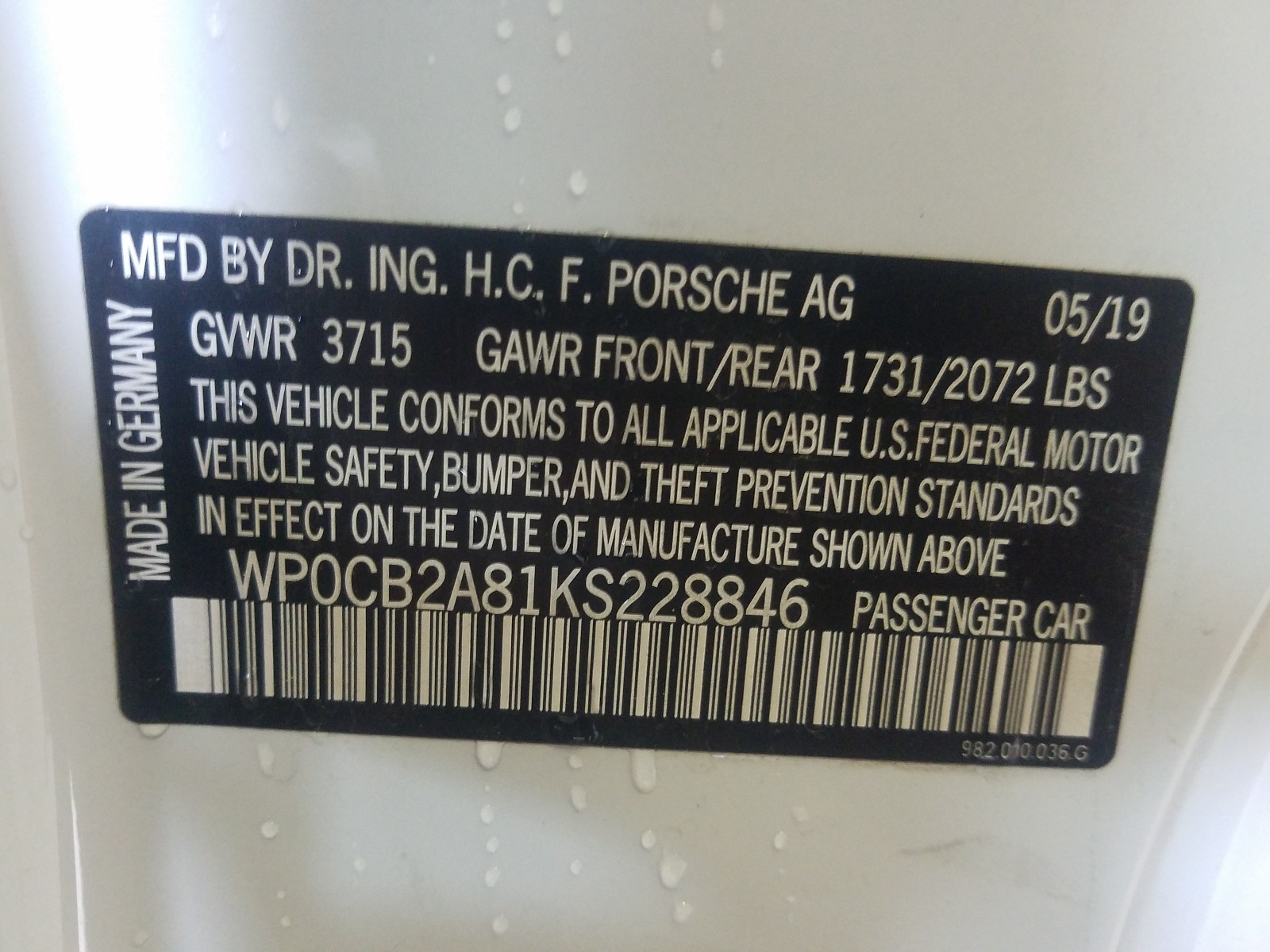 VIN: WP0CB2A81KS228846