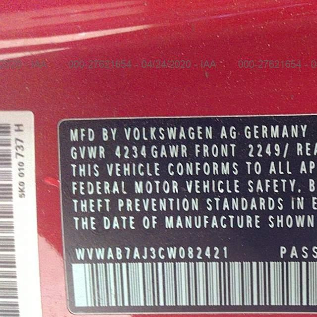 VIN: WVWAB7AJ3CW082421
