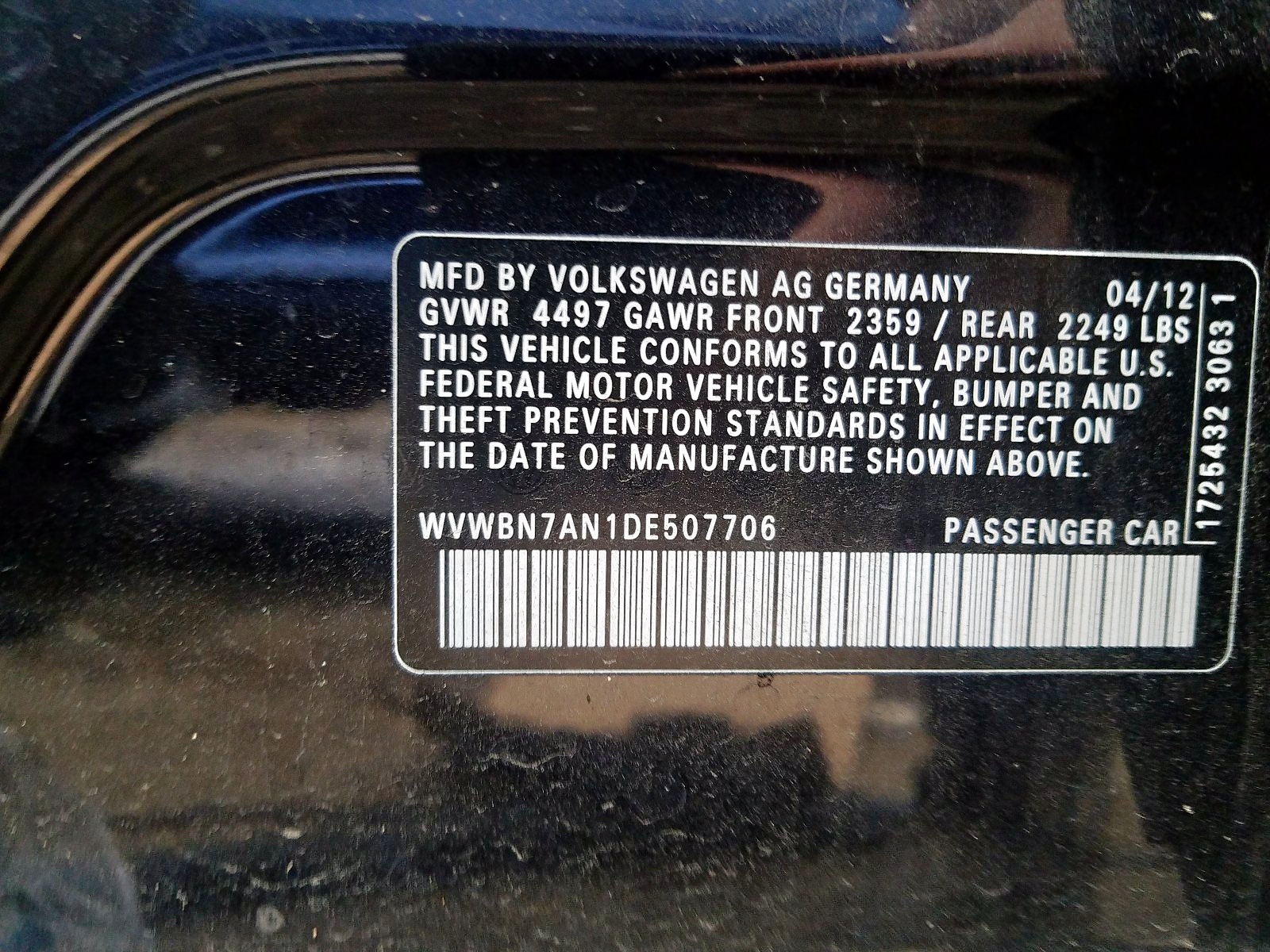 VIN: WVWBN7AN1DE507706