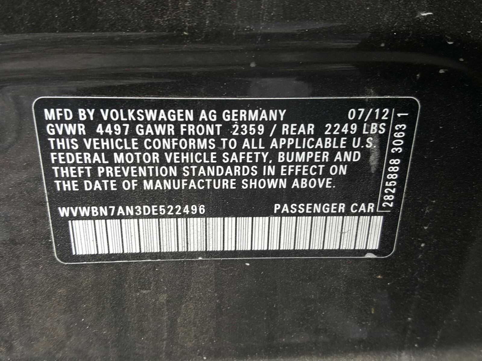 VIN: WVWBN7AN3DE522496