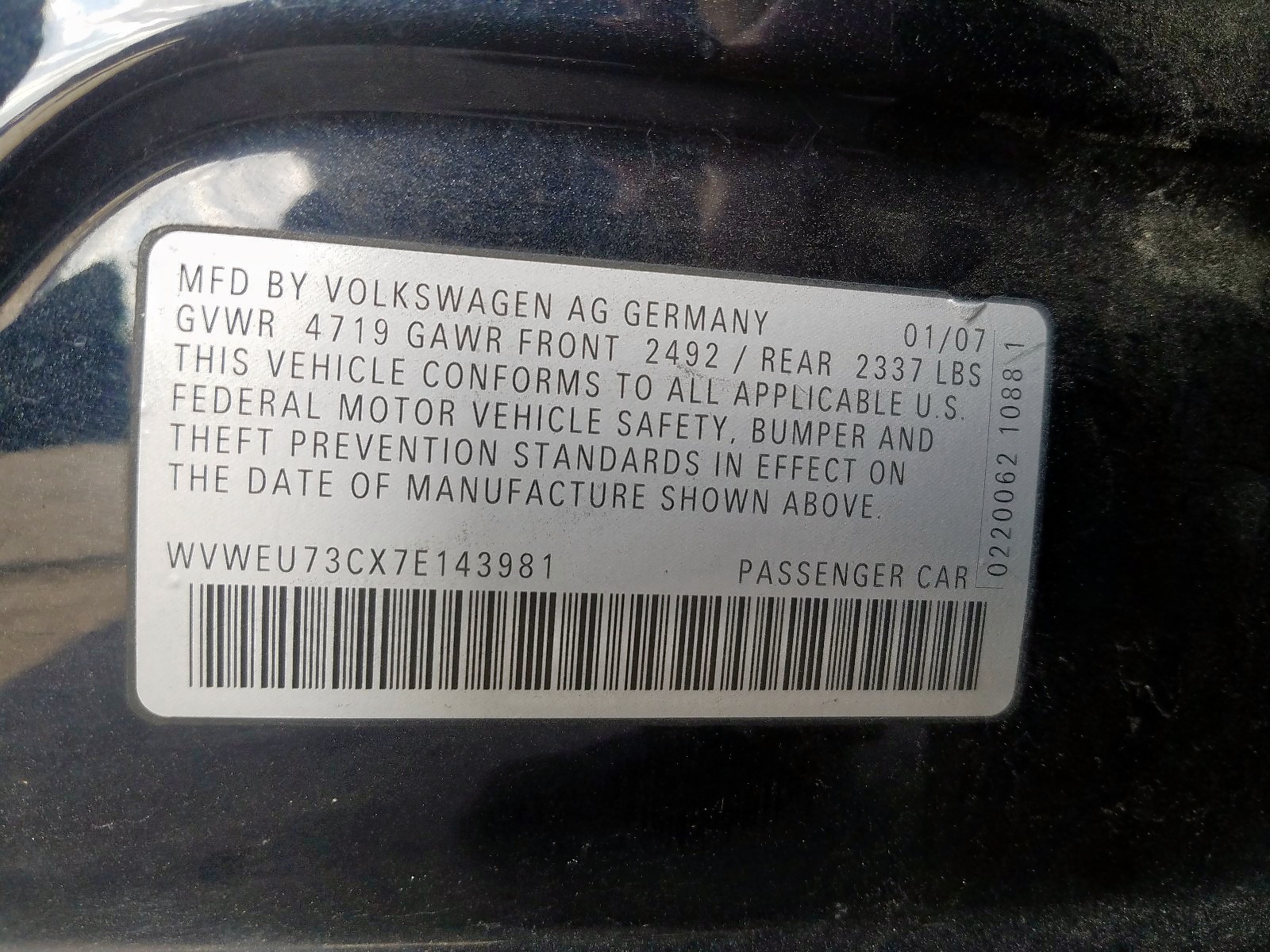 VIN: WVWEU73CX7E143981