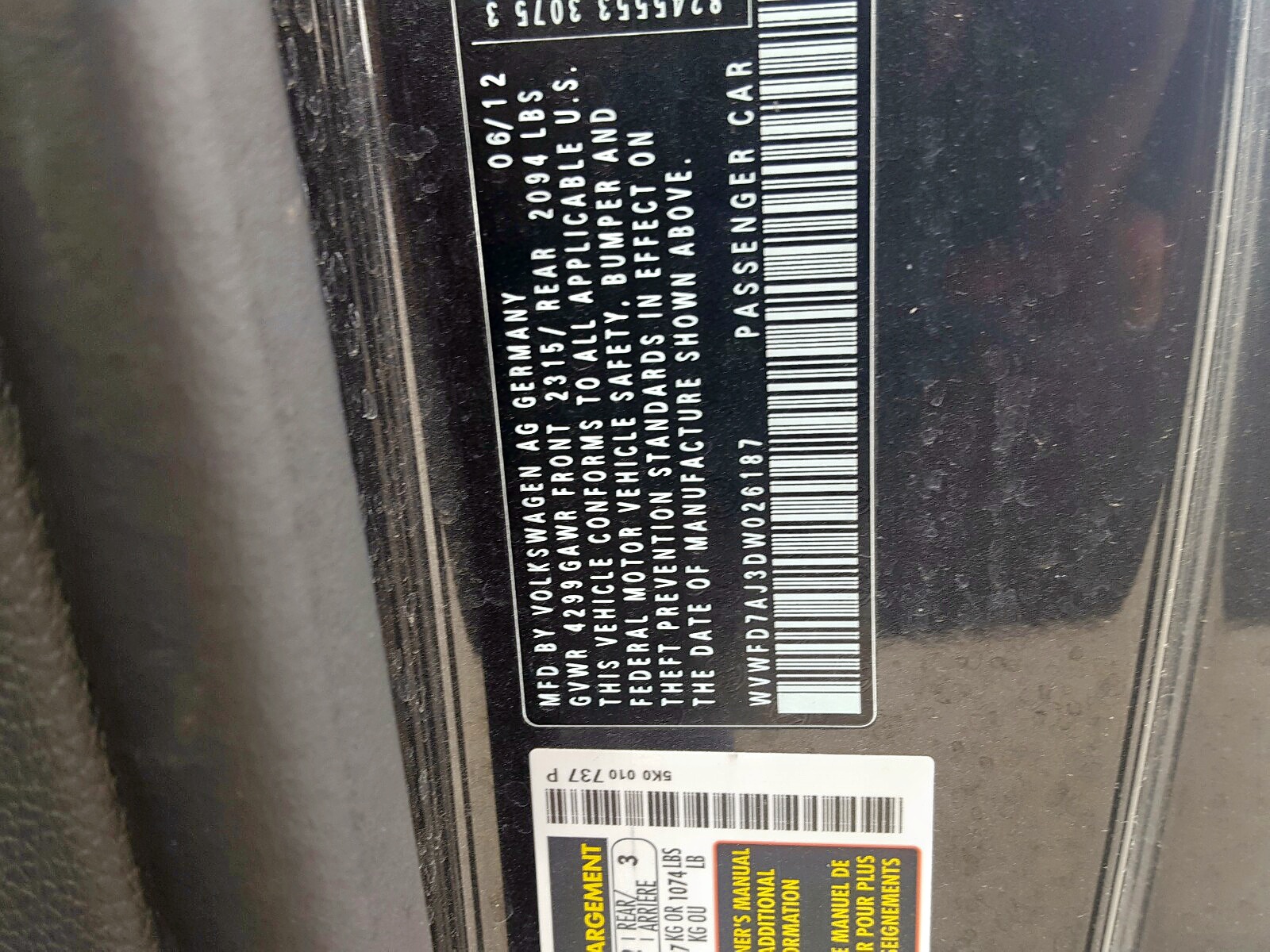 VIN: WVWFD7AJ3DW026187