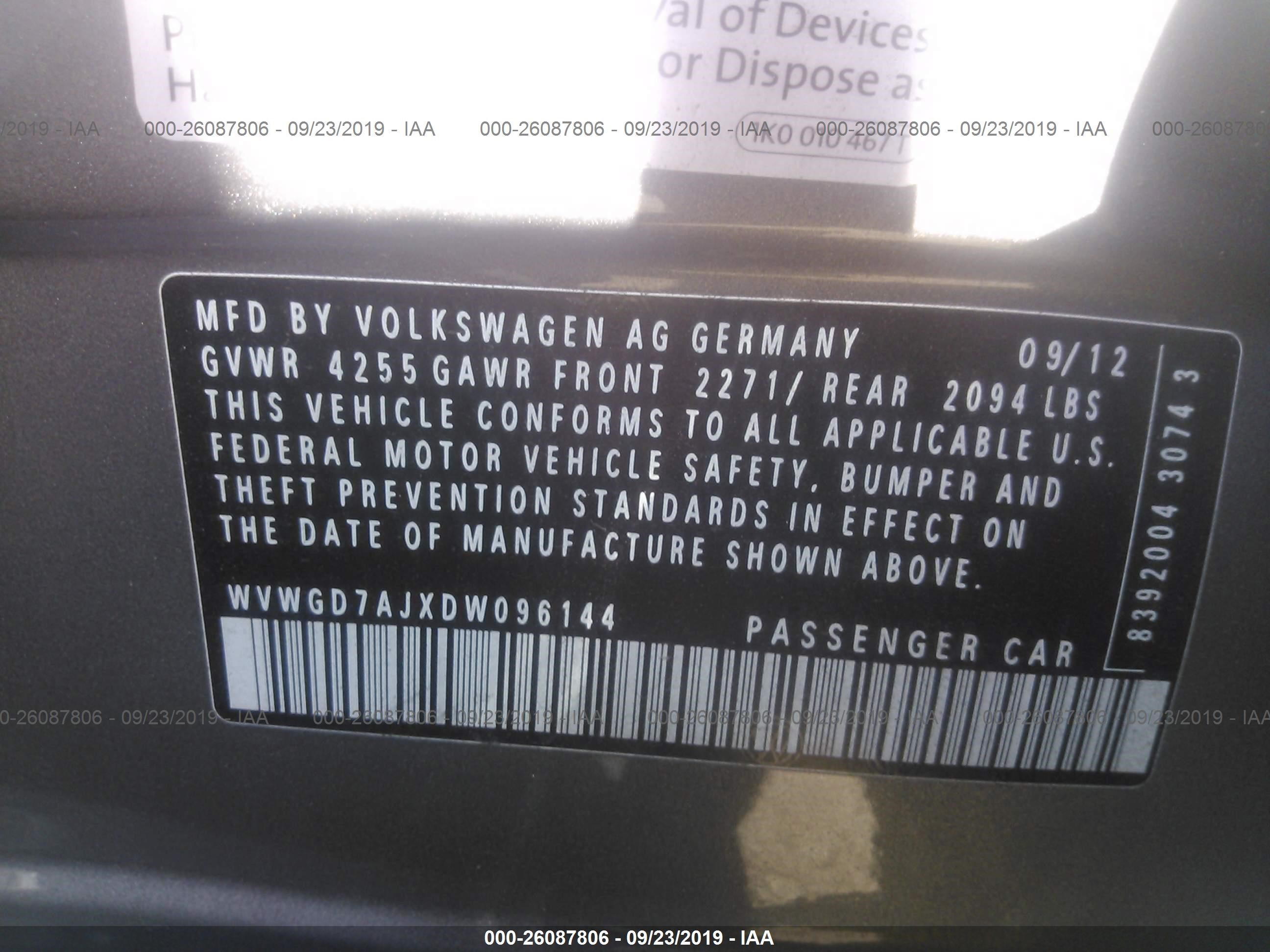 VIN: WVWGD7AJXDW096144