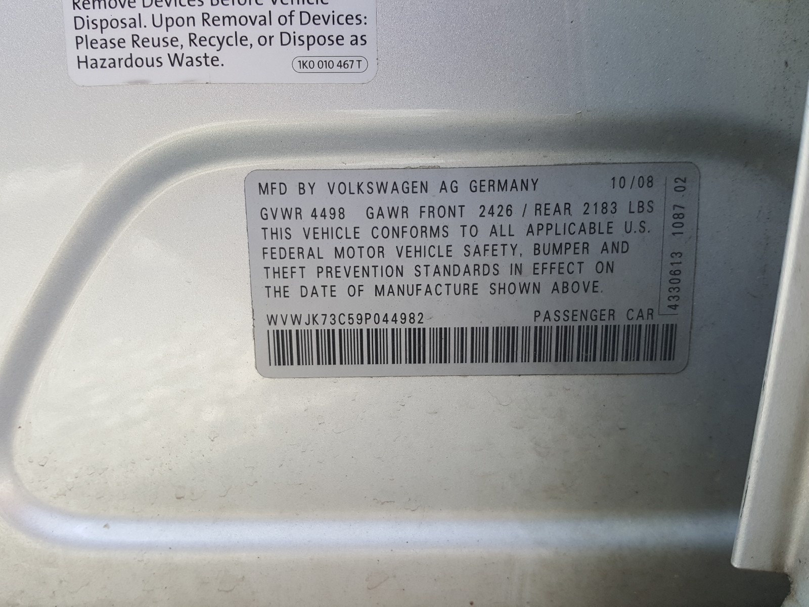 VIN: WVWJK73C59P044982