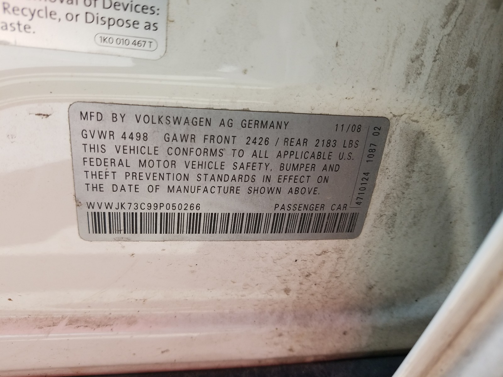 VIN: WVWJK73C99P050266