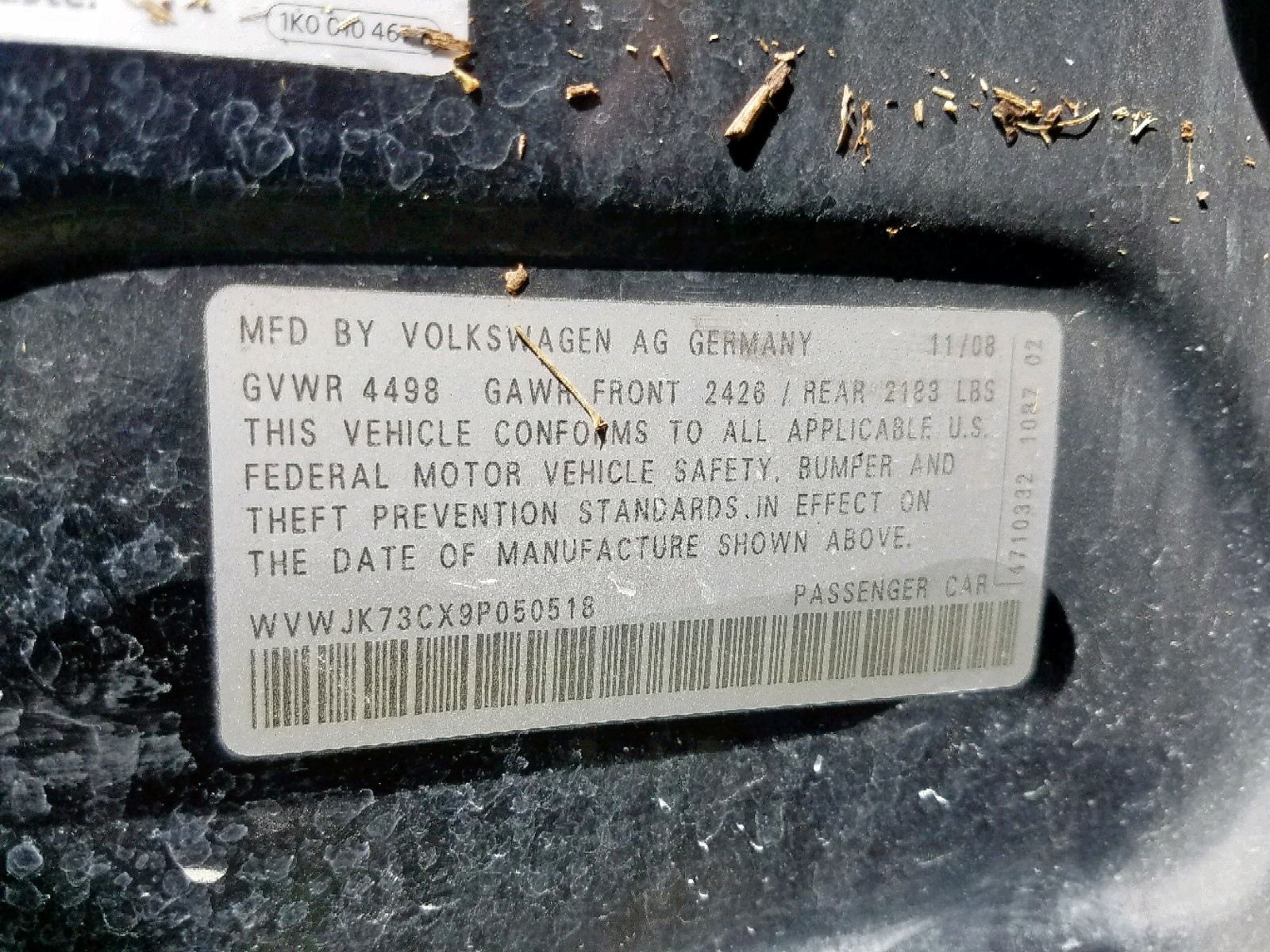 VIN: WVWJK73CX9P050518