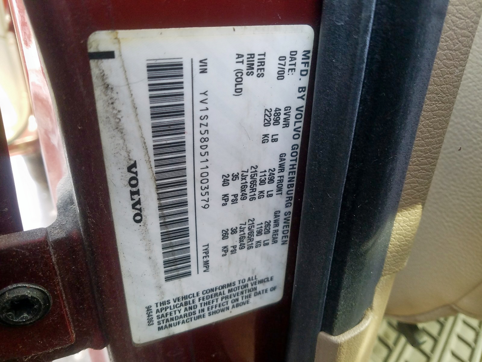 VIN: YV1SZ58D511003579