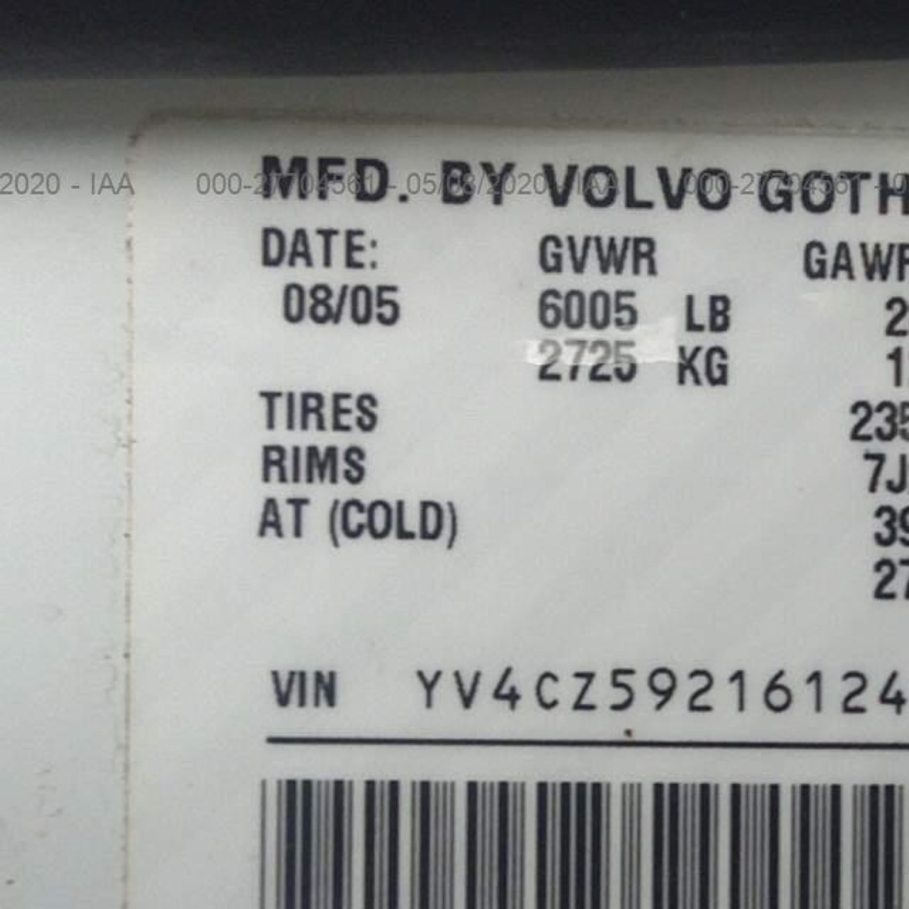 VIN: YV4CZ592161241392