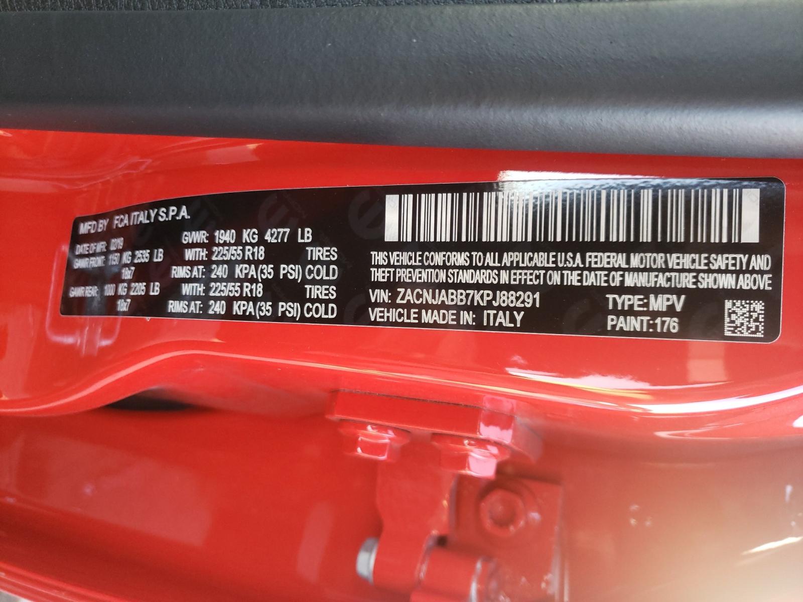 VIN: ZACNJABB7KPJ88291