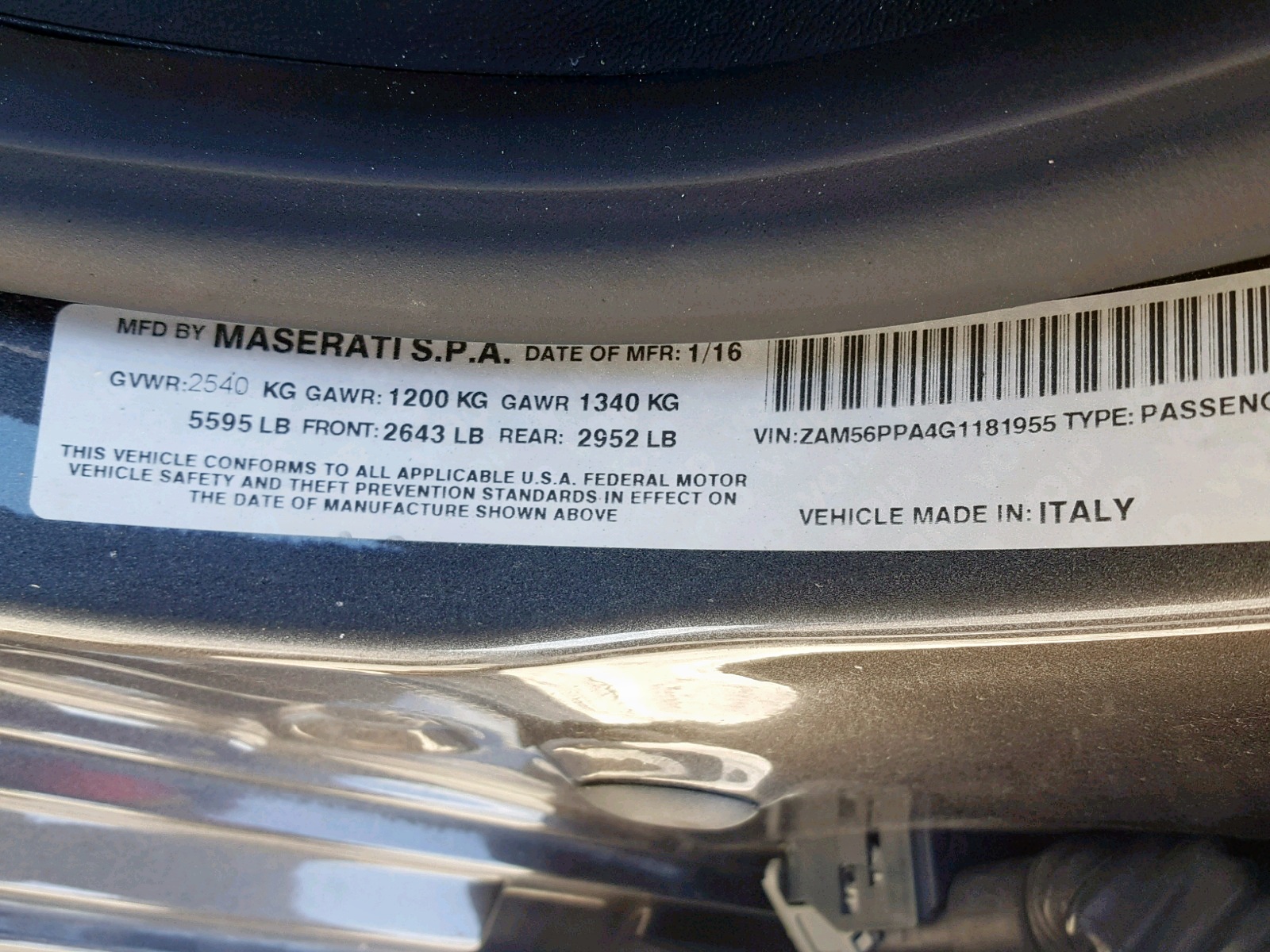 VIN: ZAM56PPA4G1181955