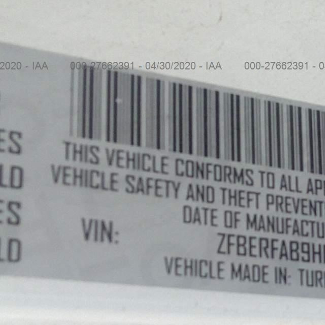 VIN: ZFBERFAB9H6H15629