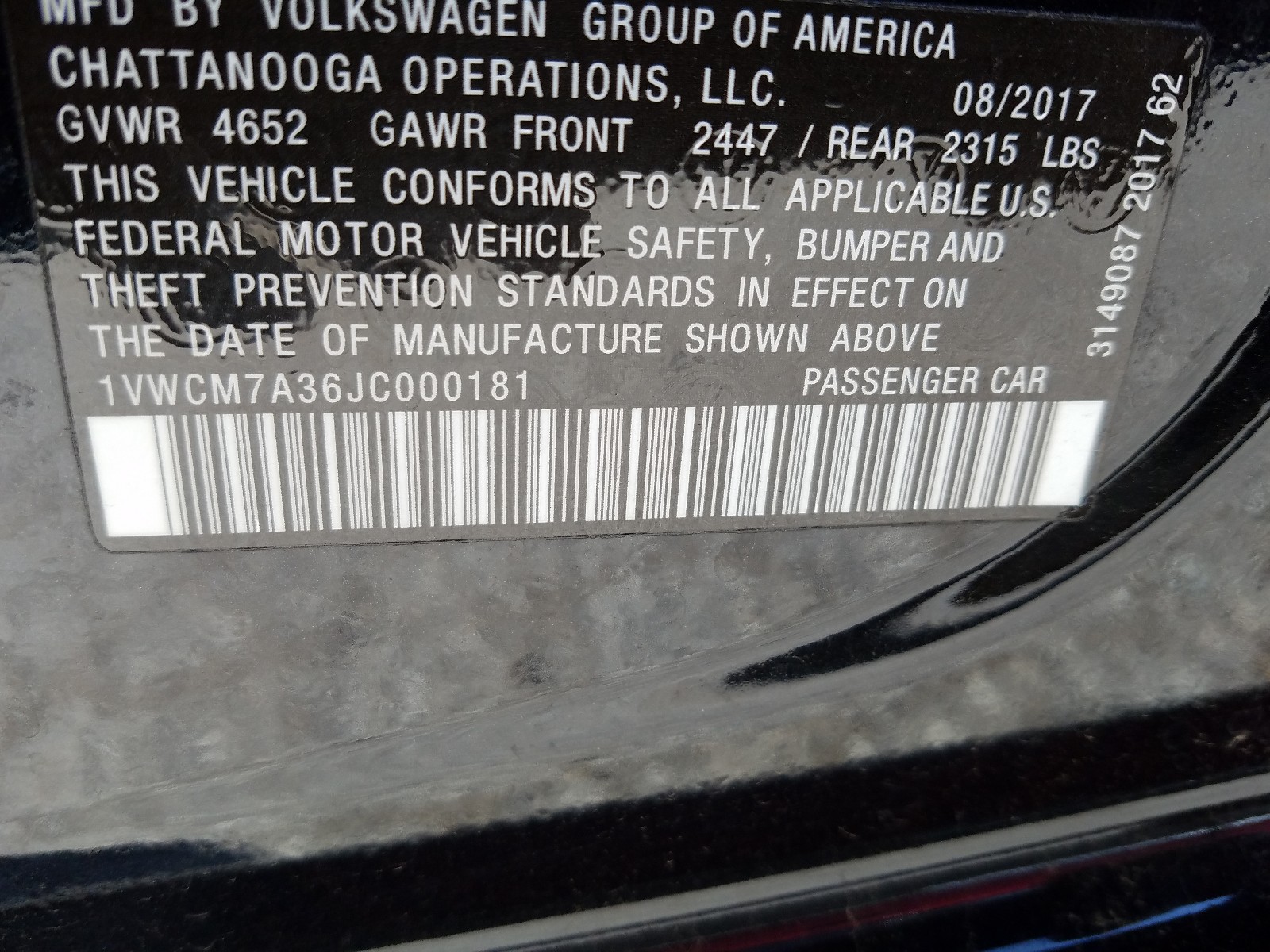 VIN: 1VWCM7A36JC000181