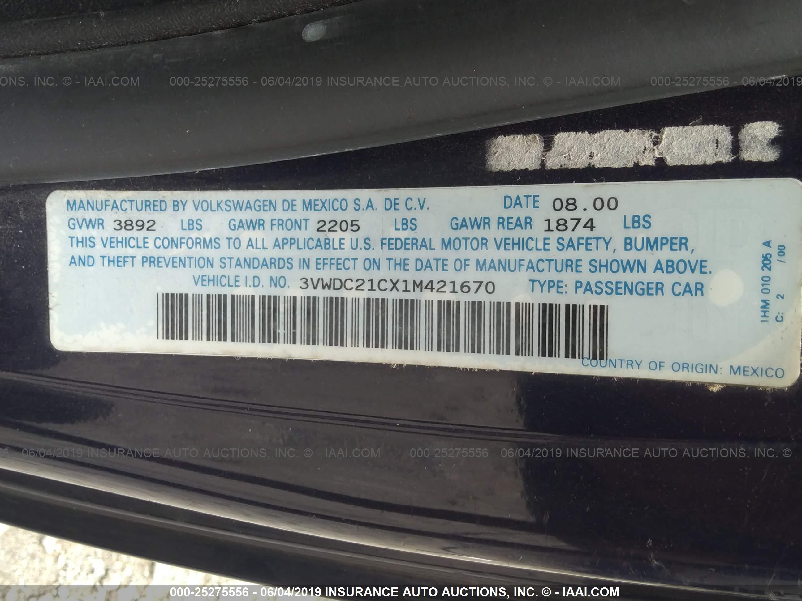 VIN: 3VWDC21CX1M421670