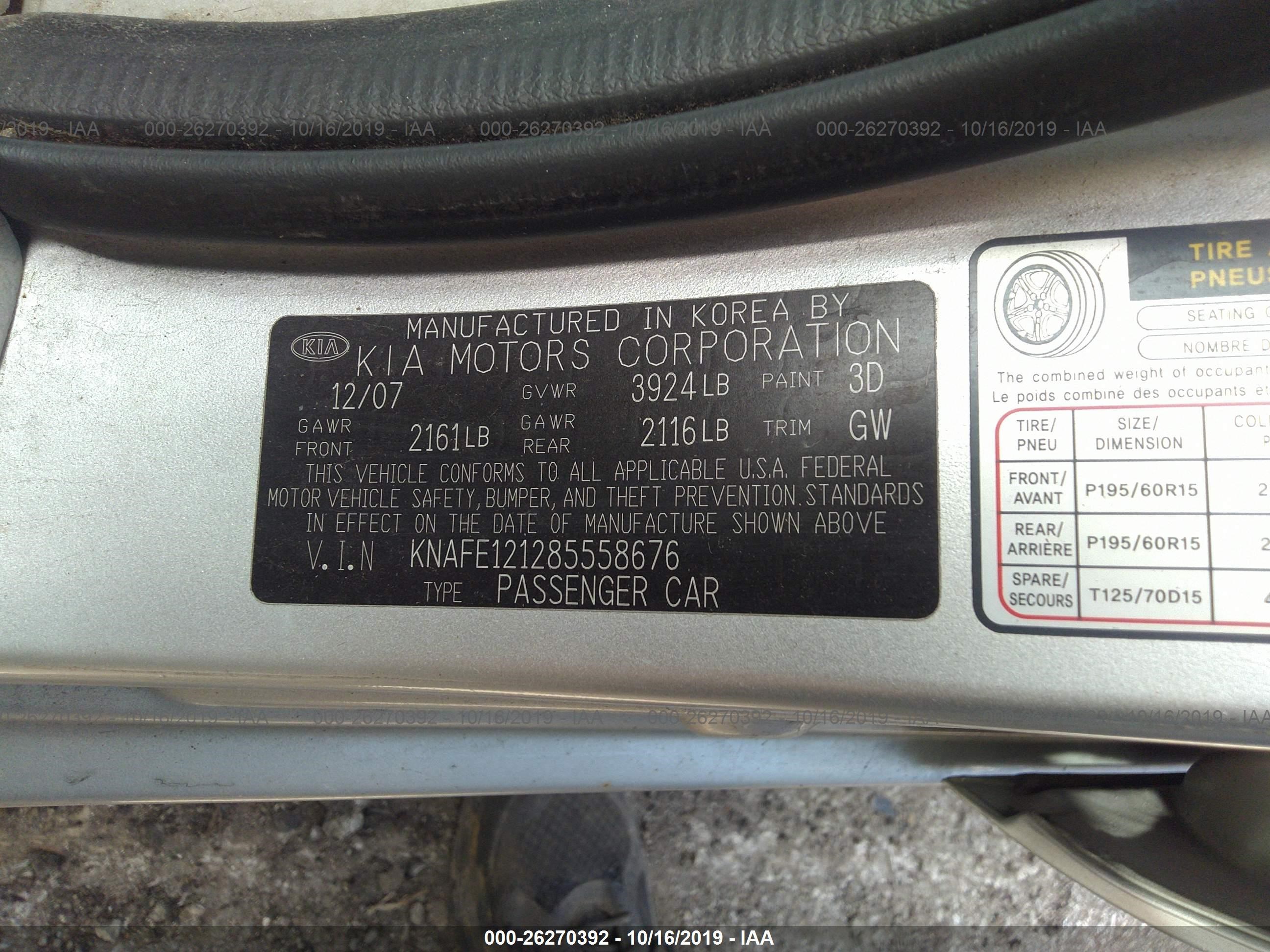 VIN: KNAFE121285558676