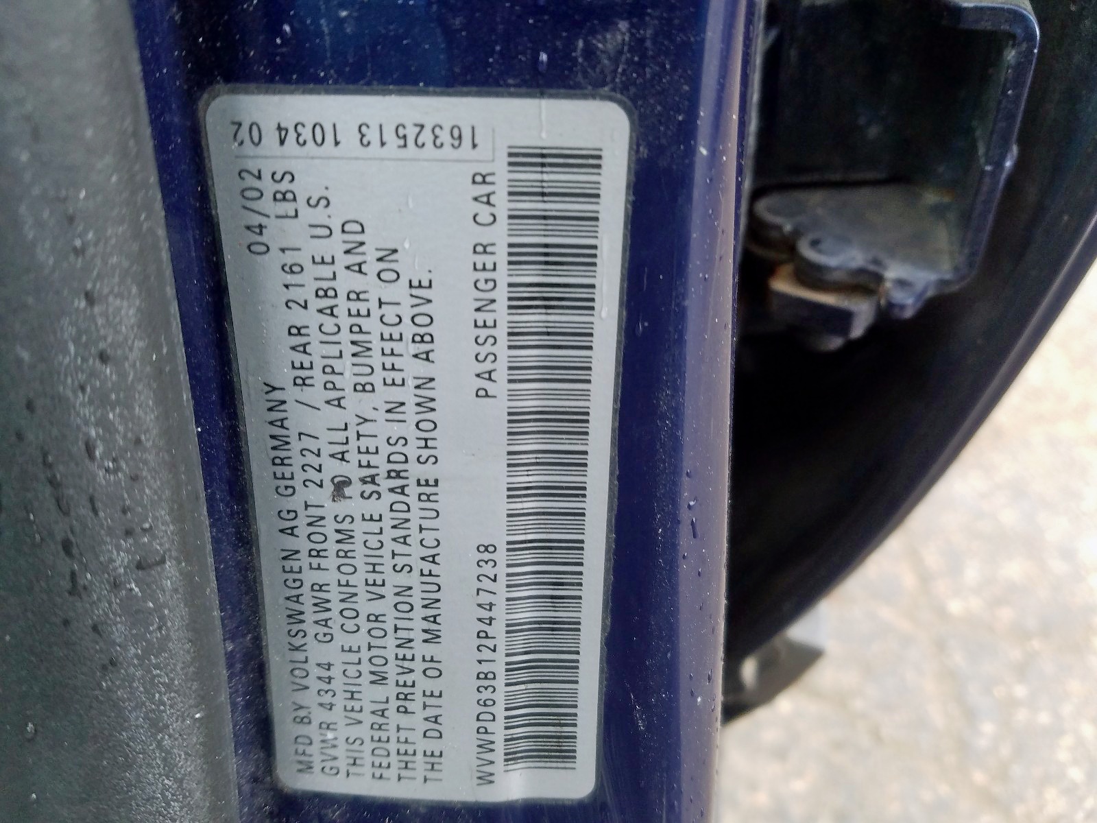 VIN: WVWPD63B12P447238